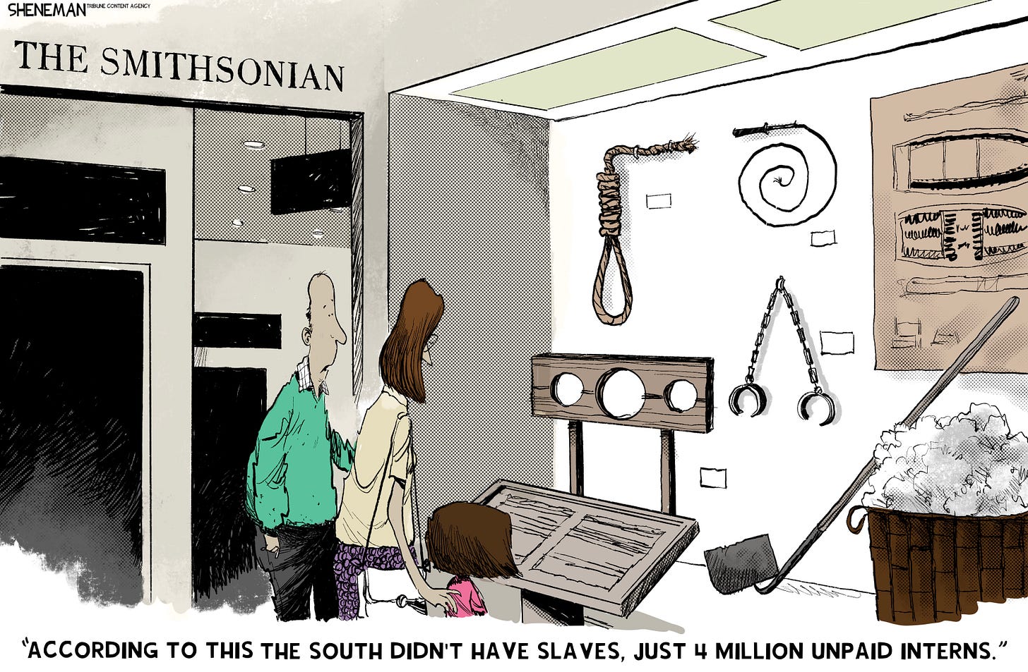 “If you think about it,” they might say, “slavery was really a good opportunity for those people to come to America, a country on the rise, and gain valuable experience in fields like agriculture, hospitality and textiles. Let’s change all the textbooks and museum exhibits to properly reflect this more optimistic view of human bondage!”